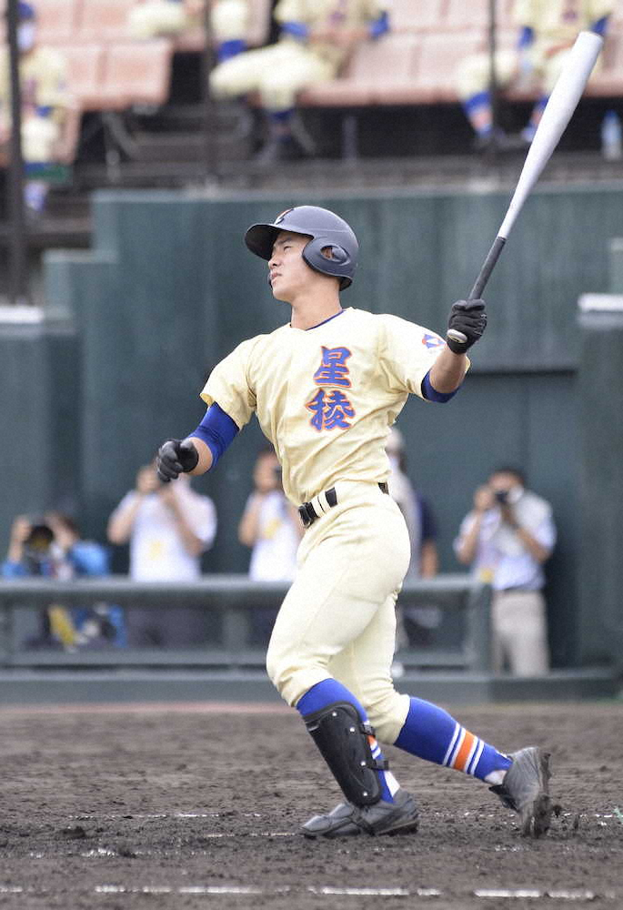 「4番・捕手」でフル出場し、3―0の4回2死一塁で左越え本塁打。2球目のど真ん中の直球をコンパクトに振り抜き、確信するようにゆっくりと一塁へ駆けだした。