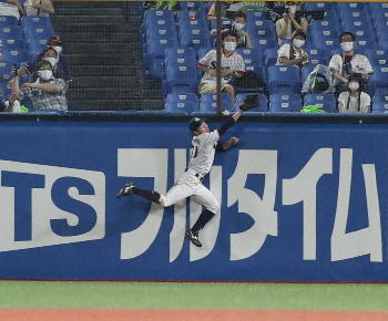 <ヤ・巨>7回、重信の打球を右翼手・山崎が追うもフェンスに直撃、そのまま突き破って客席に入ったという判定で二塁打となる(撮影・沢田 明徳) Photo by スポニチ ボールが消えた!巨人・重信 ネット突き破る“珍”エンタイトル二塁打 ギャラリーで見る この記事のフォト 2020年07月25日の画像一覧 もっと見る 2020年07月25日の画像をもっと見る