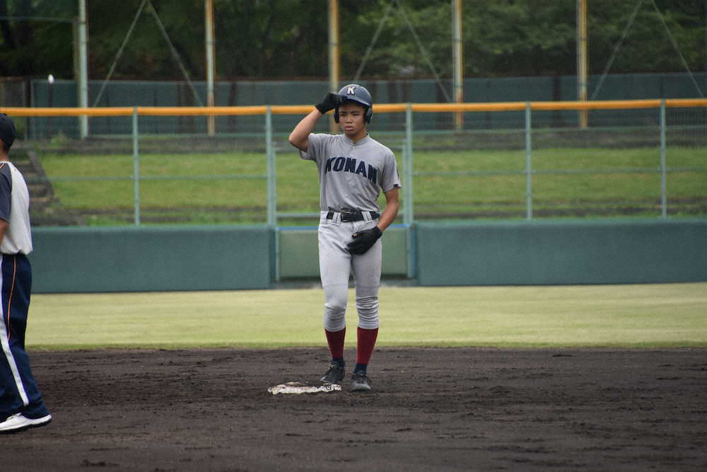 「何とか1本打って先輩たちに恩返しをしたかった」。コロナ禍で活動自粛期間中は父から「時間がある中で何をするのか自分で決めろ」と助言を受けた。食トレを実施し、体重は4キロ増の70キロに到達。1メートル71と小柄ながら力強い打撃で打線をけん引した。