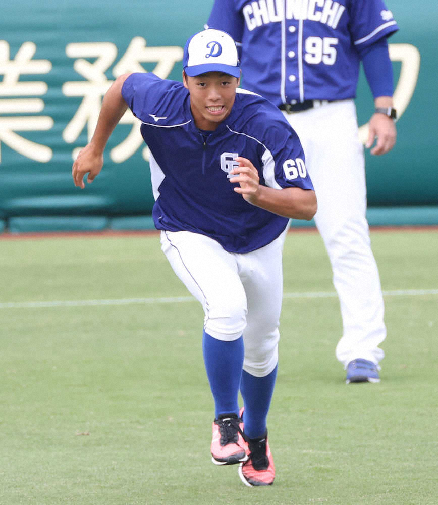 それでも同期の石川昂の犠打で二塁へ進むと、高橋の二ゴロで三進。最後は井領の打球が三遊間深くに飛ぶと、50メートル5秒8の俊足を飛ばし本塁を駆け抜け、生還。プロ初得点が決勝点となり「貴重な1点だと思いますので、チームに貢献できて良かったです」と初々しく笑った。
