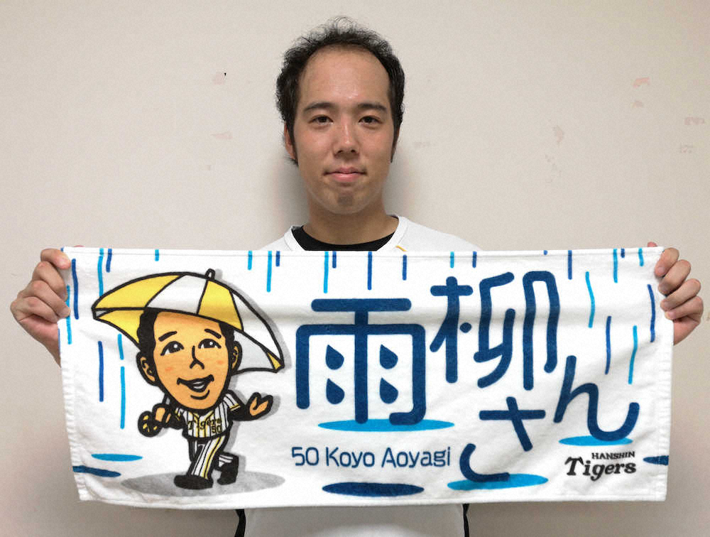 阪神 チーム屈指の雨男青柳をもじった「雨柳さん」フェイスタオル販売発表