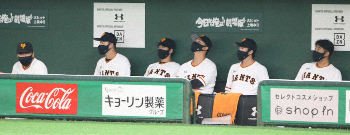 巨人ベンチ アンダーアーマー社製マスク着用 通気性高いスポーツマスクで万全期す
