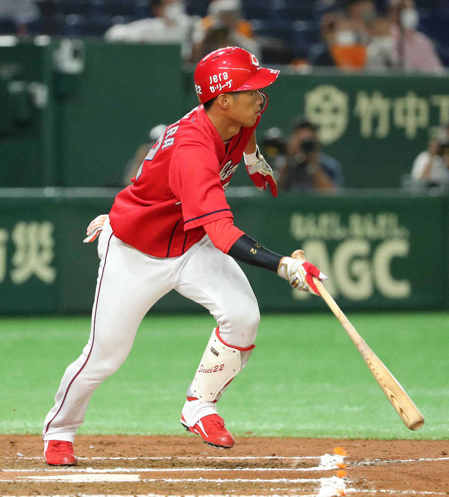 中村奨は1―2と1点を追う6回、先頭で打順が回った先発投手・森下の代打に左打者の安部がコールされると、巨人のマウンドが2番手右腕・鍵谷から3番手左腕・大江に代わったため代打の代打として登場。1球目ボールの後の2球目、ほぼ真ん中に来た直球を打ち返したが、遊ゴロに終わった。