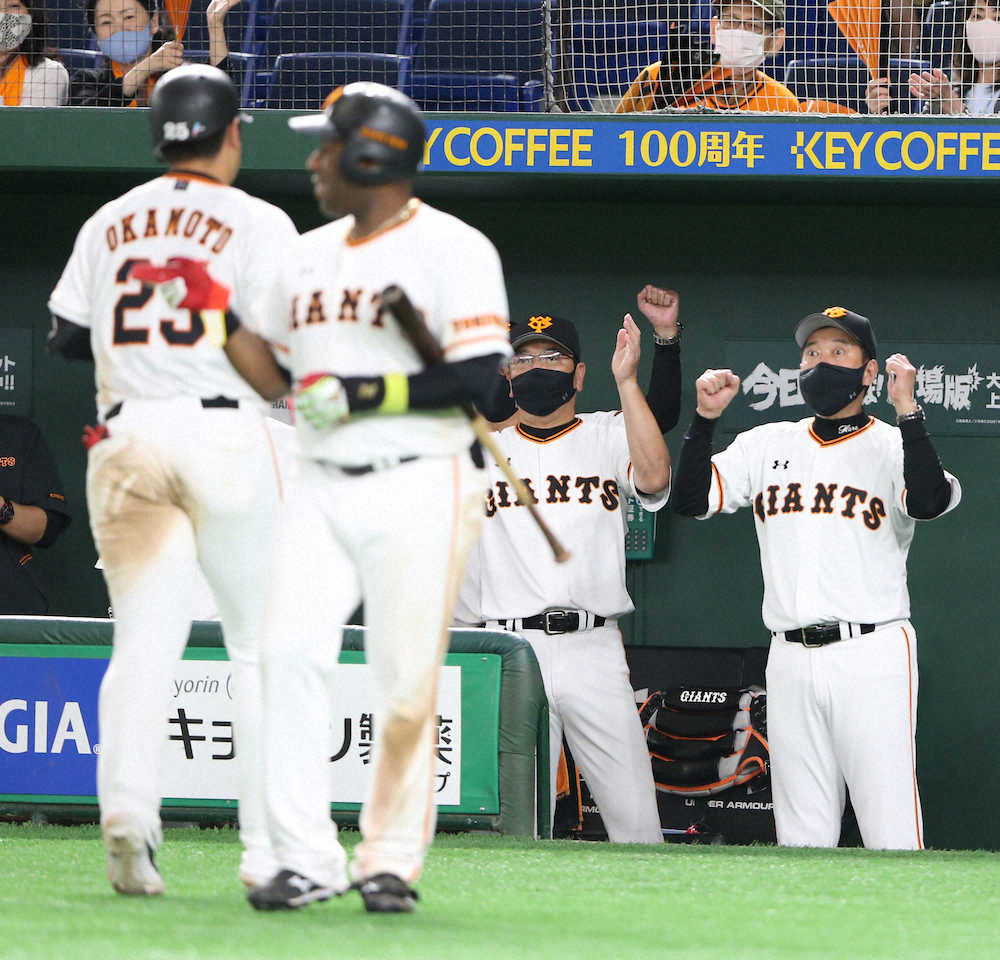 6回、自身初の満塁弾を放ち(左から)松原、丸と坂本(右)に迎えられる岡本(撮影・木村 揚輔) Photo by スポニチ 巨人、打線爆発で広島戦5連勝!岡本プロ初満弾 1カ月ぶり先発の田口が2勝目 ギャラリーで見る この記事のフォト 2020年08月01日の画像一覧 もっと見る 2020年08月01日の画像をもっと見る