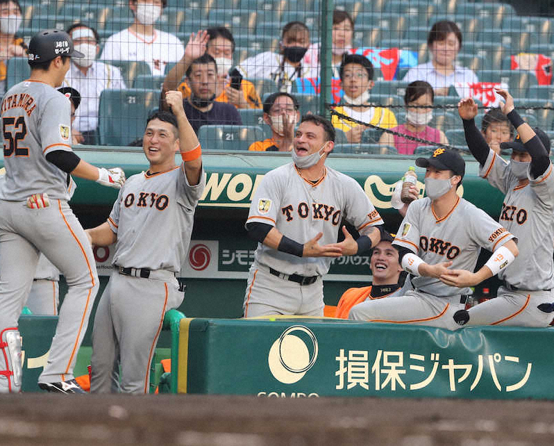 かけがえのない、守るべき存在ができた日だ。笑顔でベンチに戻ると、チームメートから両腕で輪を作って揺らす「ゆりかごダンス」で祝福された。3回、巨人・北村がプロ初本塁打をバックスクリーンへ運んだ。