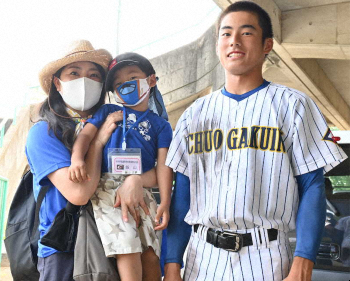 <中央学院ー秀明八千代>飯山は応援にかけつけた母・礼さん(左)と弟・志汰君と笑顔 Photo by スポニチ 中央学院・飯山 2安打2盗塁 日本ハムコーチの父の背中追いかける「1球に… ギャラリーで見る この記事のフォト 2020年08月06日の画像一覧 もっと見る 2020年08月06日の画像をもっと見る