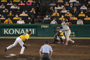 先発のメルセデスは上々の立ち上がりを見せるも3回に失点。1死から陽川に二塁打を浴び、得点圏に走者を背負うと近本に外角低めのカーブを捉えられ中前適時打。4回には梅野を四球、木浪を内野安打で出塁を許すと、ダブルスチールを決められ1死二、三塁のピンチ。ここで植田に真ん中低め146キロのストレートを右中間に弾き返され2失点。投手の高橋を遊ゴロに打ち取ったところで無念の降板となった。さらに2番手の沼田が2死二塁から陽川に中前適時打を浴び、0―4とリードを許した。