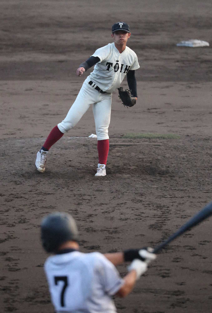 最初からエンジンは全開。7回1死二塁から“脅威の1球”が飛び出した。上宮太子の4番・谷野剛生捕手にカウント2―2から投じた5球目。空振り三振に仕留めた高め直球は、スタンドで視察したロッテのスピードガンで「154キロ」を計測した。他3球団のガンは147キロ前後だったため、誤作動の可能性もあるが、永野吉成プロ・アマスカウト部長は「そこまで違和感はなかった」と言う。最速151キロの関戸も「腕が振れていた感覚はあったので、出てもおかしくないかな…とは思います。指にかかった感覚はあった」と穏やかな笑み。この回のアウト3つをすべて空振り三振で取り、リズムをつかんだ。