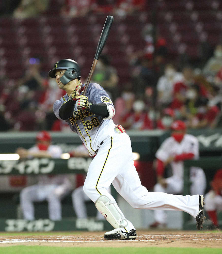 5回1死一、二塁で打席に入ると、広島・森下のカットボールを捉えて左前適時打。前日6日の巨人戦も9回に代打で登場しプロ入り初となるグランドスラムを左翼席へ叩き込んでいた。さらに続く近本も左翼へ適時二塁打。福留の二ゴロの間に4点目を奪い、一気に2点差に詰め寄った。