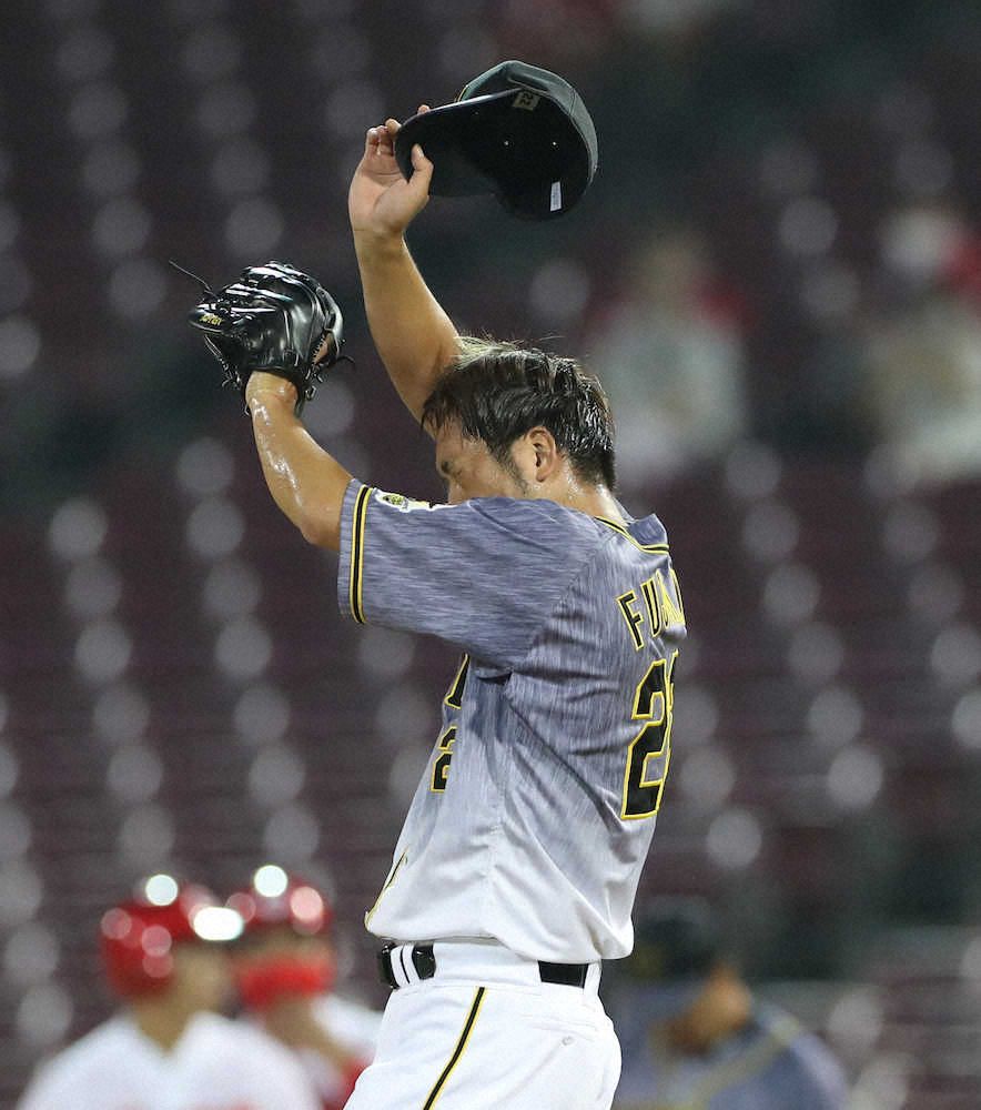 先発の西勇は初回に長野にソロ本塁打を浴びて先制を許したが、直後の2回に大山が11試合ぶりとなる一発を大瀬良から放ち、すぐさま同点に追いついた。その後は6回まで西勇、大瀬良の両エースが好投を続け同点のまま試合は終盤に。7回に阪神は1死満塁と絶好のチャンスを作ったが、西勇への代打・福留が二ゴロ併殺にたおれ得点ならず。直後の攻撃で2番手・藤川が1死二塁から代打・坂倉にセンター前へのタイムリーを浴びて勝ち越しを許した。
