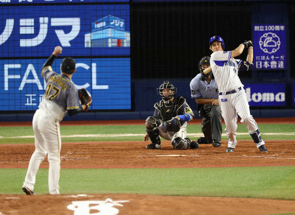 DeNAの国吉佑樹投手が勝ち越しの適時二塁打を放った。