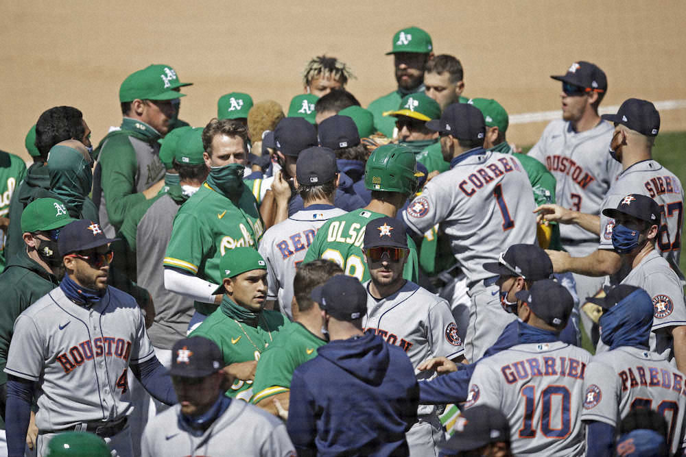 アスレチックス―アストロズ戦で両軍総出の乱闘騒ぎが起こった。7回にアスレチックスのラウレアーノが2度目の死球を受け不満そうな態度を見せると、アストロズのアレックス・シントロン打撃コーチと口論に。激高したラウレアーノが相手ベンチに突進し、両軍が入り乱れた。アストロズのサイン盗み問題が背景にあるとみられる。