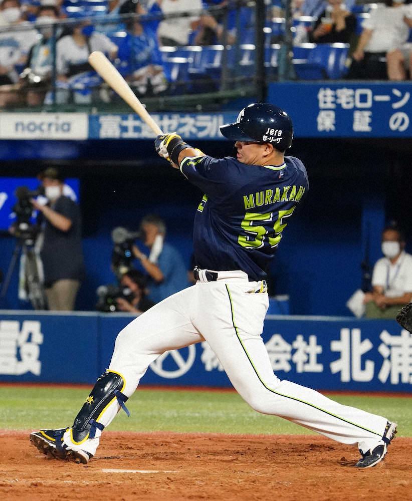 <D・ヤ>4回1死、村上は右越えソロを放つ(撮影・沢田 明徳)