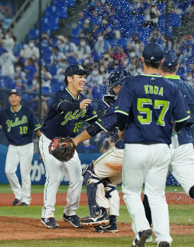 開幕前の実戦2試合で4回1/3を11失点。それでも高津監督から信頼され“おまじない”もかけられた。「練習試合と公式戦は別物だから」。これで吹っ切れた。開幕から自身4連勝を記録するなど早くも昨季に並ぶ5勝目に「おまじないのおかげ。今日の勝利はみんなで勝ち取った勝利」と笑顔。指揮官にも最高の形で恩を返した。(黒野 有仁)