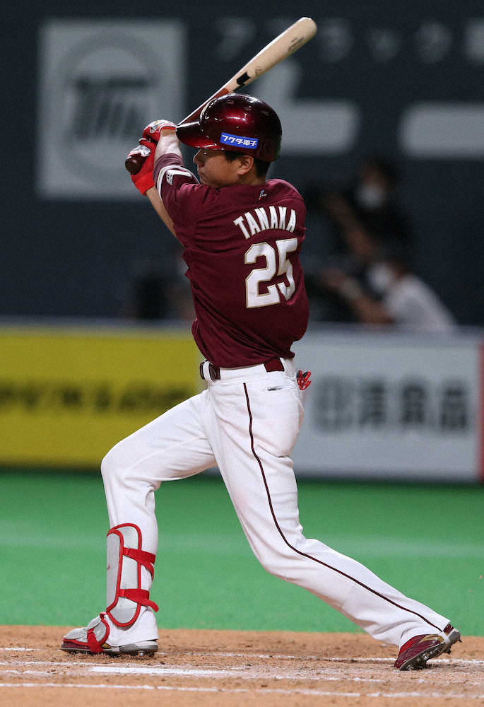 <日・楽>8回2死三塁、2点本塁打を放つ田中(撮影・高橋茂夫)