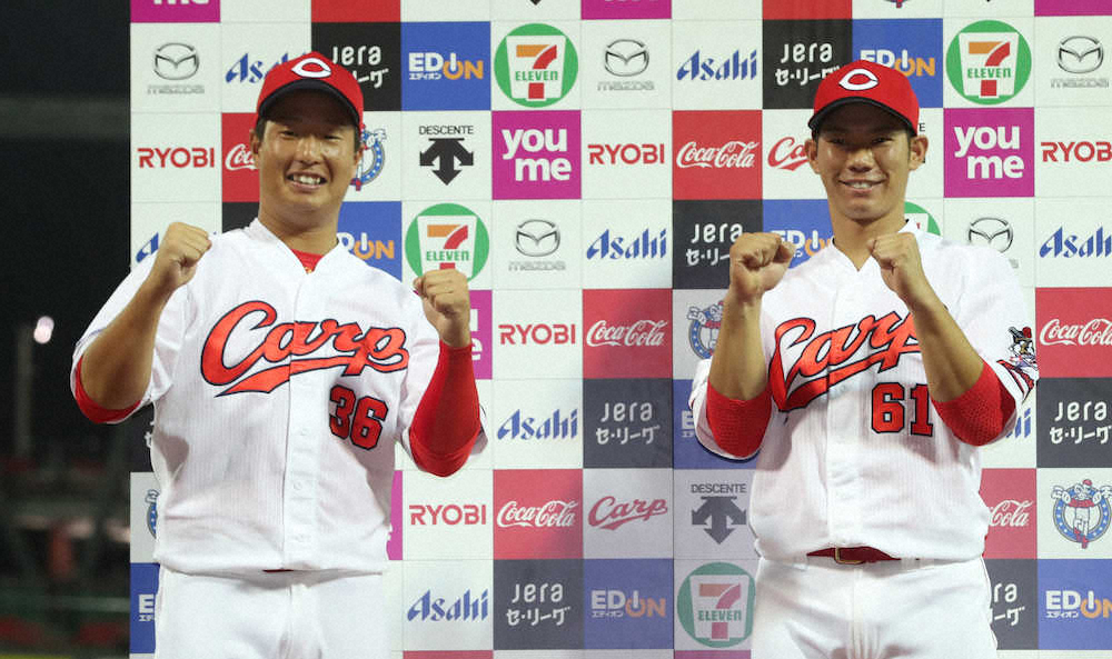 リリーフで今季3勝目を挙げ、一緒にお立ち台に上がった塹江からも「いやー…すごいなと思って見てました」と手放しの賛辞をもらった坂倉。「遠藤も塹江さんもピンチになりながらも強い気持ちを持って投げてたと思うので、その勢いのまま強い気持ちでいかせていただきました」と捕手らしいコメントで喜んだ。