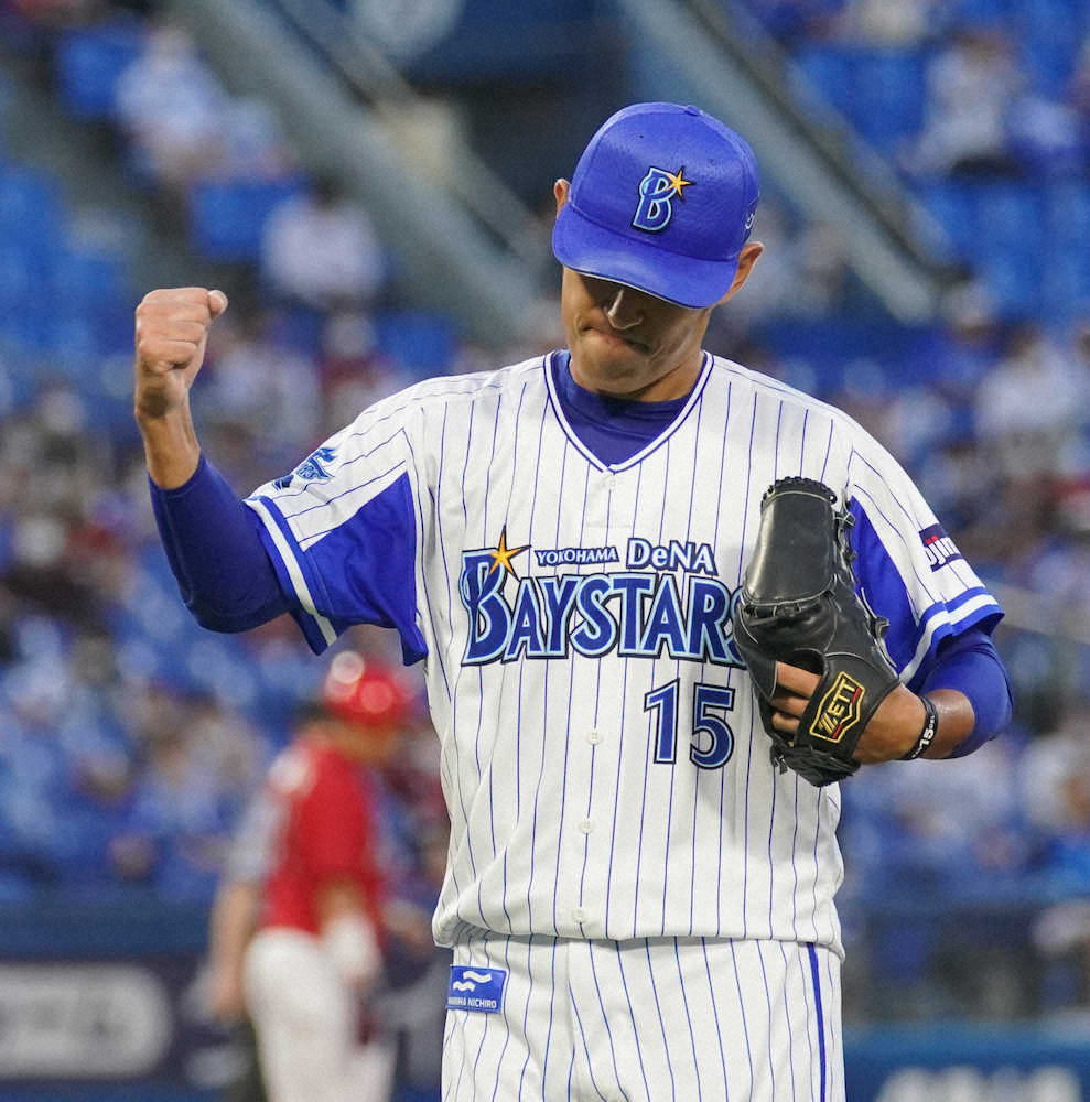 初回1死一、二塁のピンチも鈴木を三ゴロ併殺に仕留めてしのいだが、2回1死から堂林に左翼席上段に特大ソロを浴びて先制を許した。同点の4回には1死から鈴木の打ち取ったかに思われた当たりを、遊撃手・倉本と中堅手・梶谷が交錯。梶谷のグラブをかすめながら二塁打となる不運で得点圏に走者を背負うと、続く松山の適時二塁打で勝ち越された。6回1死一、三塁で松山を迎えた場面で、投手交代が告げられ、パットンが救援した。