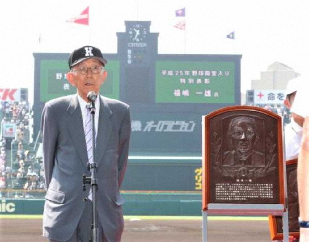 母校小倉高校庭に立つ「栄冠はわれに輝く」の記念碑と福嶋一雄さん(2004年6月4日撮影) Photo by スポニチ 「栄冠はわれに」で撮った写真 謙虚でやさしく、明るかった福嶋一雄さん ギャラリーで見る この記事のフォト 2020年08月28日の画像一覧 もっと見る 2020年08月28日の画像をもっと見る