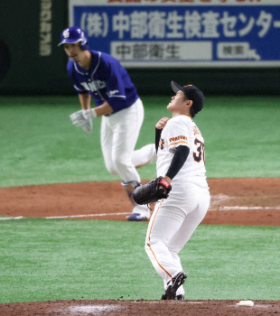 <巨・中>6回、同点に追いつかれた田口(撮影・森沢裕)