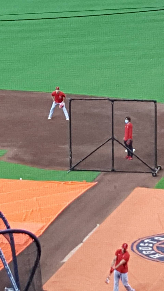 24日の試合前にはメジャーで初めて右翼と一塁で本格的な守備練習に参加しました。今季に限らず今後どこかで守る可能性があると思います。コーチから提案されて、本人が「もちろんやりたい」ということだったので、トレーナーからOKが出たタイミングで練習に入りました。送球はまだできませんが、投手の時からゴロの処理がかなりうまいと評判で、ブライアン・バターフィールド三塁コーチも「今すぐにでもいけるね」と褒めていました。あれはお世辞ではないですね。