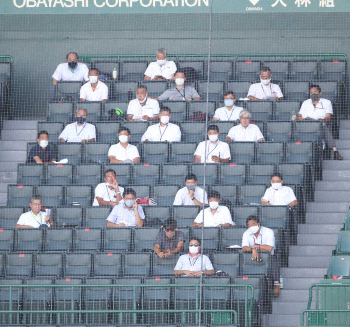 ▼日本ハム・大渕隆スカウト部長 大人数の中で見ると改めて彼のスケール感がよく分かった。(福岡県大会は人数制限があり)複数のスカウトで見られたのは大きい。