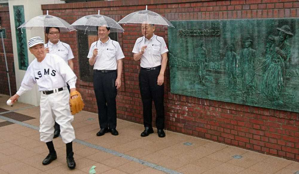 1946(昭和21)年8月15日、戦後再開の夏の高校野球(当時中等野球)全国大会の開幕試合(西宮球場)で京都二中(現鳥羽高)1番打者として最初の打席に立ち、四球で出塁した。47年、戦後初めて甲子園球場で開催された春の選抜大会にも出場した。