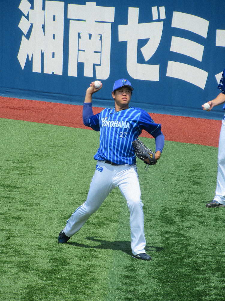 キャッチボールで調整するDeNA・上茶谷