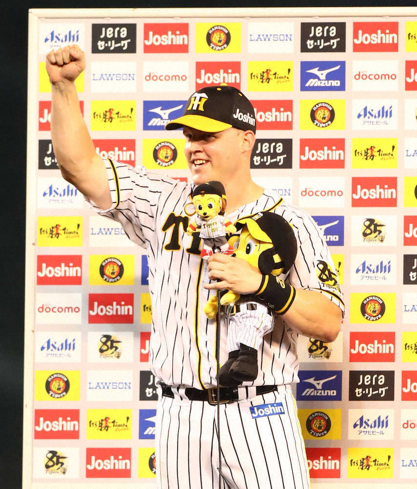 今季チーム初のサヨナラ勝ちに、お立ち台では百点満点のリップサービス。虎党にはすっかりおなじみとなった両手を高速でひらひらさせる「ハッピーハンズ」ポーズでホームを踏み、歓喜のシャワーを浴びた。貯金2も最多。2戦連続となる左中間への13号サヨナラ弾だけでなく、この日の全打点をたたき出した4番の存在感は、日に日に増している。矢野監督は「本当に勝負強い打撃で打点を挙げてくれる打者。本当に頼りにしています」と全幅の信頼を置いていた。