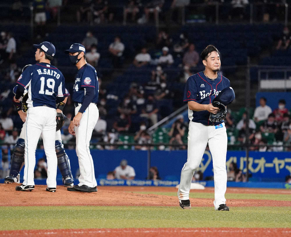 <ロ・西>5回途中、3失点で降板する平井(撮影・沢田 明徳)