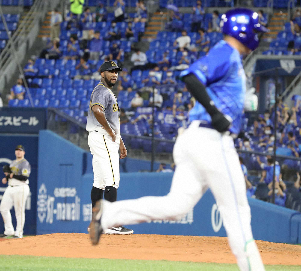 5回までの無四球投球が一転、先頭の梶谷から2者連続の四球で無死一、二塁。3番ソトに左翼への二塁打を浴びて1点を返されると、続く佐野に初球を捉えられてライトへの特大3ランを浴びた。