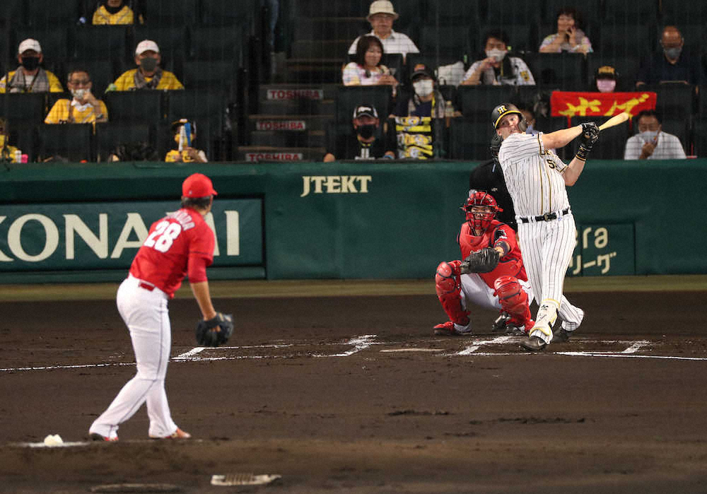 先頭の近本が投手強襲の内野安打で出塁。自身初めて2番に座った捕手の梅野が左前打を放つと、昨年5月3日DeNA戦以来の3番・糸原は犠打を決めた。1死二、三塁のチャンスから頼れる4番・サンズがフルカウントから床田の内角直球を右前に運び、幸先良く先制した。
