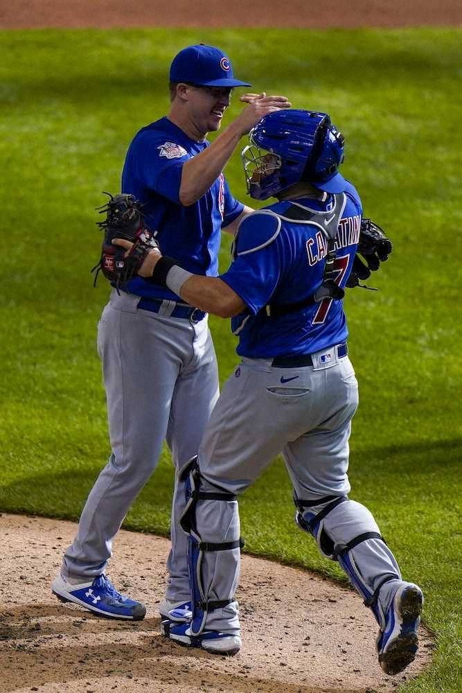 ノーヒットノーランを達成したカブスのミルズ(左、AP)