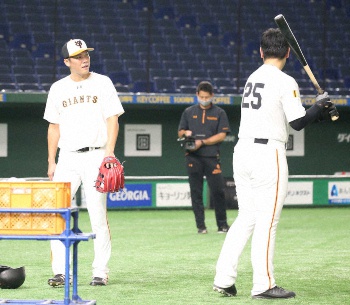 阿部ヘッドコーチ代行(右)と話す坂本勇(撮影・坂田 高浩) Photo by スポニチ 巨人 坂本&岡本2戦連続スタメン外れる 試合前練習には参加 ギャラリーで見る この記事のフォト 2020年09月17日の画像一覧 もっと見る 2020年09月17日の画像をもっと見る