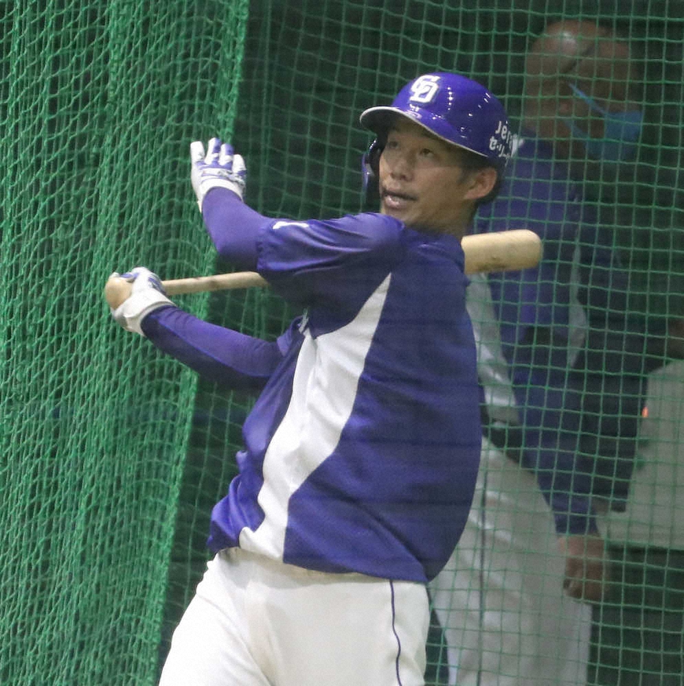 <広・中 雨天中止 中日練習>打撃練習する京田 (撮影・奥 調)