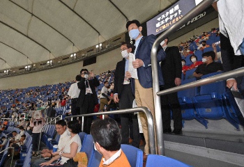政府の大規模イベント人数制限緩和を受け、東京ドームの入場者がこの日から1万9000人に拡大。新型コロナ対策を担当する西村康稔経済再生担当大臣が、東京ドームを視察した。