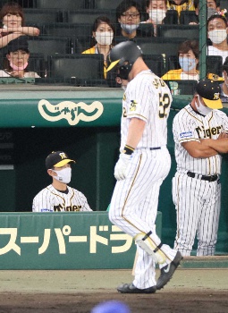 3度目の対戦となったDeNA・上茶谷を最後まで打ち崩せなかった。今季9度目の零敗。22日まで22勝9敗2分けの強さを誇っていた甲子園では初めて1点も奪えず、入場制限緩和後の本拠地初黒星となった。