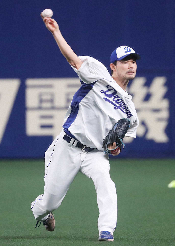 キャッチボールで汗を流す中日・福谷(撮影・椎名 航)