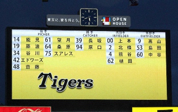 阪神は新型コロナウイルス感染が判明した糸原、陽川ら濃厚接触者も含め10選手を出場選手登録を抹消したことに伴い、スタメンも変更。荒木が2番・二塁で今季先発。遊撃には小幡が入った。先発の西勇は現在2試合連続完封勝利しており、球団では66年バッキー以来の3試合連続完封を目指す。