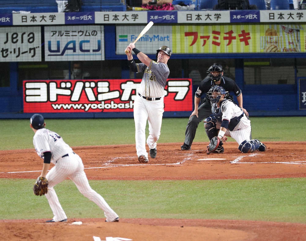 <ヤ・神>2回無死、ボーアは右中間にソロ本塁打を放つ(撮影・坂田 高浩)