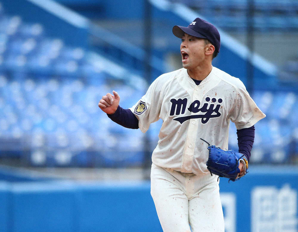 明大の153キロ右腕・入江は6回3失点ながら今季初白星を挙げた。