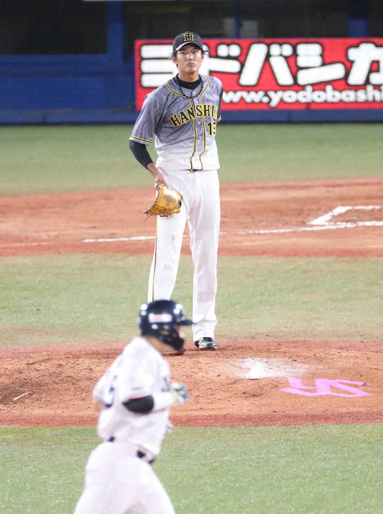唇をかんだのは1―1で迎えた6回だ。先頭で対峙(じ)した村上に2球目の152キロ直球をバックスクリーン奥まで運ばれる特大の勝ち越しソロを被弾。内角へ狙った1球がやや高めに浮いたところを、相手の主砲は逃してくれなかった。