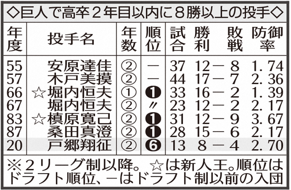 <巨・中>8勝目を挙げた戸郷は体で「8」を作り、笑顔を見せる(撮影・森沢裕) Photo by スポニチ 巨人・戸郷8勝目でVマジック24!高卒2年目以内では桑田以来33年ぶり 新人… ギャラリーで見る この記事のフォト 2020年09月28日の画像一覧 もっと見る 2020年09月28日の画像をもっと見る