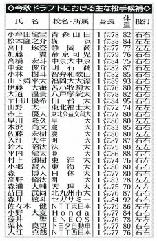 主な投手ドラフト候補 Photo by スポニチ 【阪神ドラフト戦略・投手編】早大・早川、トヨタ自動車・栗林…補強ポイン… ギャラリーで見る この記事のフォト 2020年09月29日の画像一覧 もっと見る 2020年09月29日の画像をもっと見る