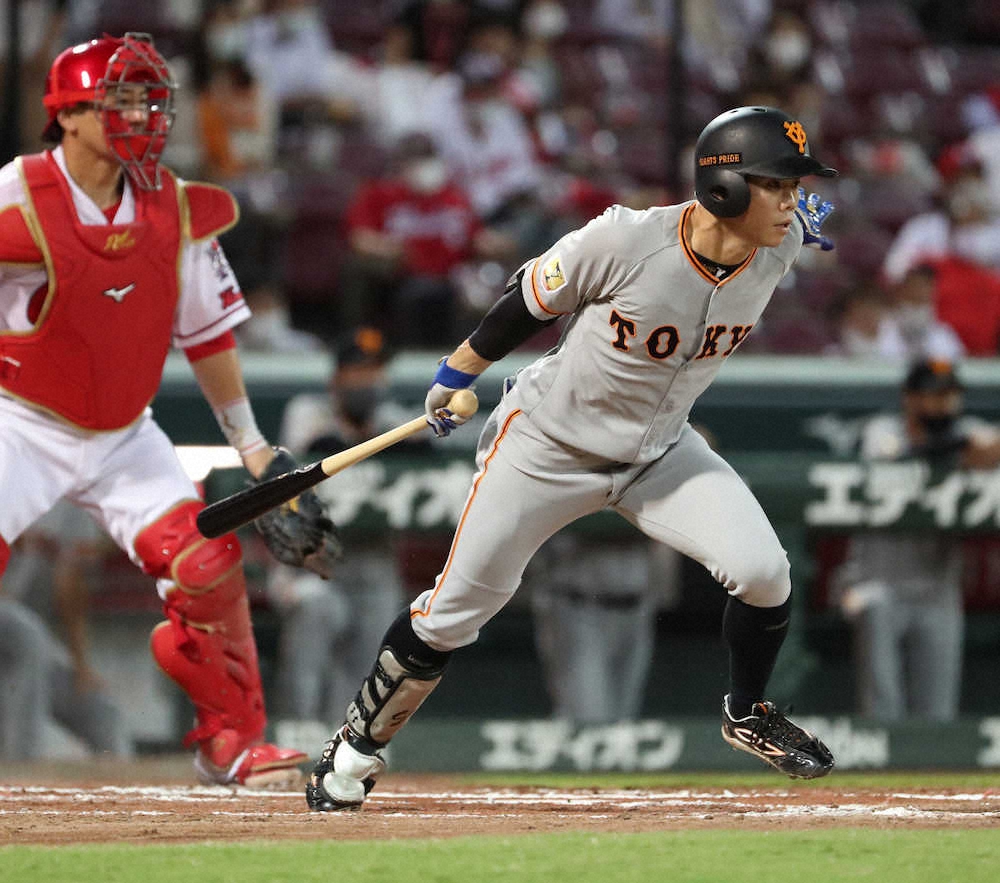 無傷の開幕12連勝を狙うエース菅野が初回に7球で先制を許したものの、0―1で迎えた3回だった。先頭の若林が四球で出塁し、菅野の犠打と吉川尚死球で1死一、二塁。続く松原の右前適時打で追いつくと、坂本の併殺打性の遊ゴロにもランエンドヒットがかかっていたため一走・松原が二塁セーフ。その間に三走・吉川尚が勝ち越しのホームを踏んだ。