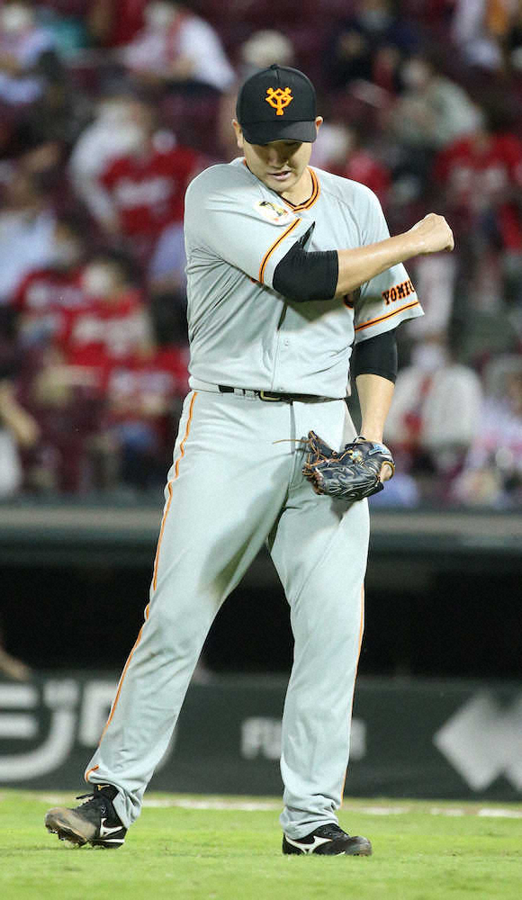逆転してもらった直後の3回には遠藤、大盛、田中広を3者連続三振に仕留め、4回も鈴木誠を外角低めスライダーで3球三振に取るなど長野、堂林とこの回も3奪三振。5回には三塁手・岡本の失策で先頭・菊池涼を塁に出した後で代打・坂倉に右越えエンタイトル二塁打を許して無死二、三塁のピンチを迎えたが、大盛、田中広を連続三振に取った後、鈴木誠も右飛に打ち取り得点を許さなかった。