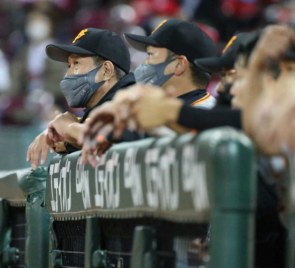 <広・巨>9回、ベンチから試合を見守る原監督(撮影・森沢裕)