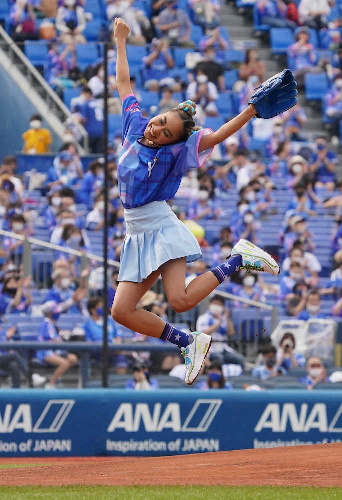 青山テルマ「めちゃめちゃ緊張」人生初セレモニアルピッチでノーバン投球