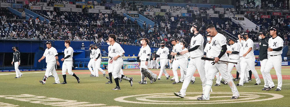 ロッテは6日、新たに荻野貴司外野手(34)、角中勝也外野手(33)ら7選手を含む11人の新型コロナウイルス感染が判明したと発表。4日に感染が発表された岩下大輝投手(24)らと合わせ計13人の大量感染となった。同日、岩下の濃厚接触者も含めて11人の出場選手登録を抹消。藤原恭大外野手(20)ら11人が2軍から緊急昇格してオリックス戦に臨んだが、わずか2安打で零敗を喫した。