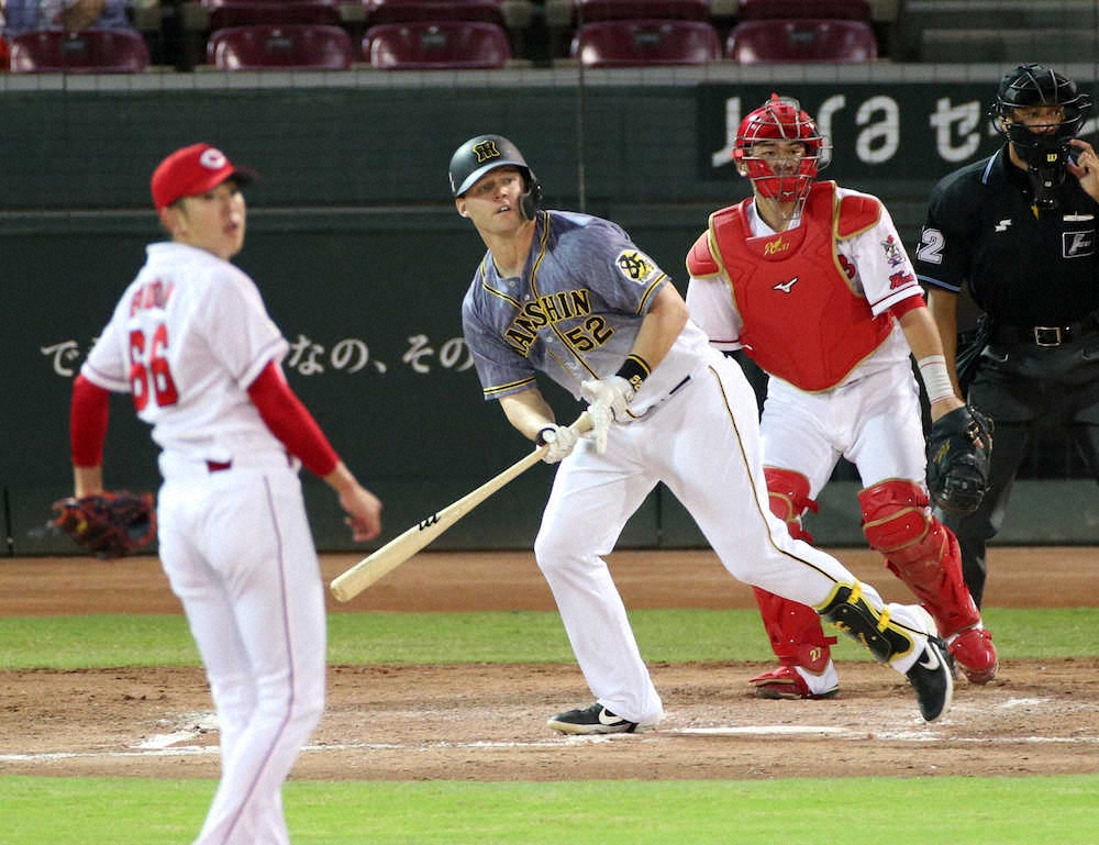 長ーいトンネルを抜け出した。阪神・サンズが30打席ぶりの安打を放った。2―2の3回1死無走者で迎えた第2打席でカウント1―1から広島・遠藤の内角高めのチェンジアップを左前打。9月27日のヤクルト戦以来、8試合ぶりにHランプをともした。その後、梅野の左前打で勝ち越しのホームを踏んだ。