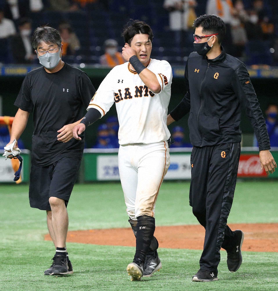 <巨・D>4回無死、頭部への死球を受けた吉川尚(右)を見つめる原監督(左)=撮影・木村 揚輔 Photo by スポニチ 巨人・吉川尚 頭部死球で交代も 脳振とうの症状なし ギャラリーで見る この記事のフォト 2020年10月09日の画像一覧 もっと見る 2020年10月09日の画像をもっと見る